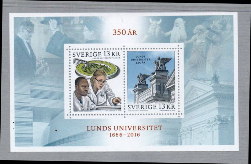 Sweden Scott Catalogue number 2788 2016 350th Anniversary Lund University stamp souvenir sheet .