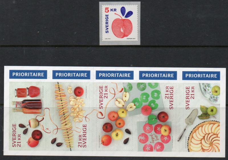 Sweden Scott Catalogue number 2803-2804 2017 Apples stamp set .Mint, fine to very fine original gum never hinged .Member Canadian Stamp Dealers Association .Canadian Customers - I pay the GST/HST on your purchases from me .
