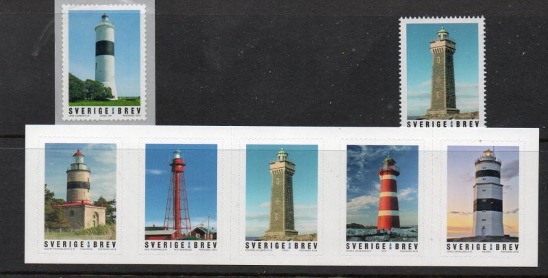 Sweden Scott Catalogue number 2813-2815 2018 Lighthouses stamp set .Mint, fine to very fine original gum never hinged .Member Canadian Stamp Dealers Association .Canadian Customers - I pay the GST/HST on your purchases from me .
