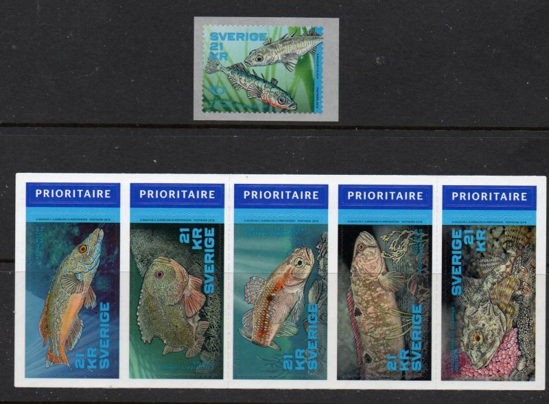Sweden Scott Catalogue number 2819-2820 2018 fish stamp set .Mint, fine to very fine original gum never hinged .Member Canadian Stamp Dealers Association .Canadian Customers - I pay the GST/HST on your purchases from me .