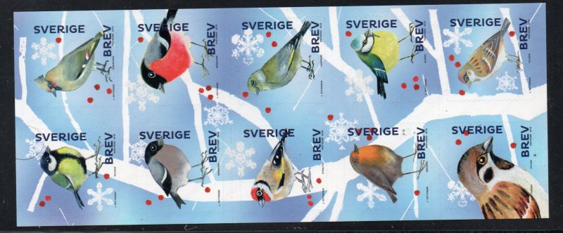 Sweden Scott Catalogue number 2829 2018 Birds stamp block of 10 .Mint, fine to very fine original gum never hinged .Member Canadian Stamp Dealers Association .Canadian Customers - I pay the GST/HST on your purchases from me .