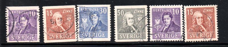 Sweden Scott Catalogue number  293-298 1939 200th Anniversary Royal Academy of Sciences stamp set .Used, fine to very fine .Member Canadian Stamp Dealers AssociationCanadian Customers - No added GST/HST .US customers - There is no tariff on postage stamps that I send to you.