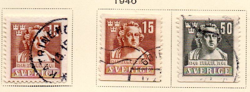 Sweden Scott Catalogue number  313-315 1940 200th Anniversary Birth of Sergel stamp set .Used, fine to very fine .Member Canadian Stamp Dealers AssociationCanadian Customers - No added GST/HST .US customers - There is no tariff on postage stamps that I send to you.