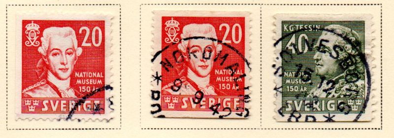 Sweden Scott Catalogue number  329-331 1942 National Museum stamp set .Used, fine to very fine .Member Canadian Stamp Dealers AssociationCanadian Customers - No added GST/HST .US customers - There is no tariff on postage stamps that I send to you.