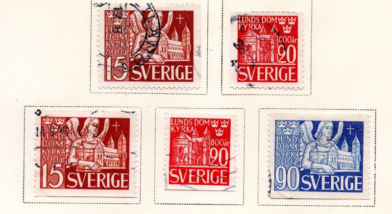 Sweden Scott Catalogue number 369-37 1946 800th Anniversary Lund Cathedral stamp set .