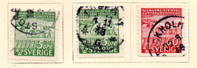 Sweden Scott Catalogue number 374-376 1946 100th Anniversary Swedish Agricultural Shows stamp set .