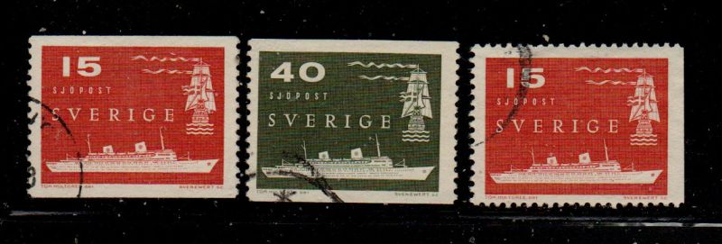 Sweden Scott Catalogue number 521-523 1958 300th Anniversary Trans Atlantic Mail Service stamp set .Used, fine to very fine .Member Canadian Stamp Dealers Association .Canadian Customers - No added GST/HST on your purchases from me .