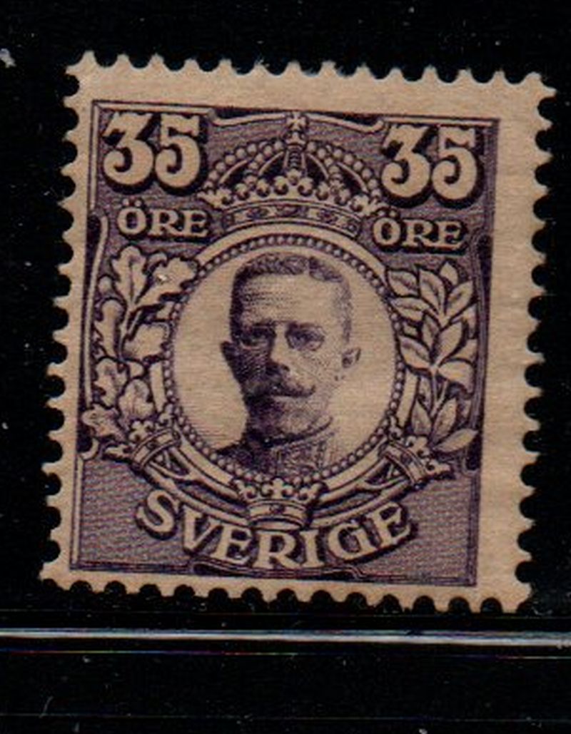 Sweden Scott Catalogue number 87 1911 35 ore dark violet Gustav V stamp .Mint, very good to fine, original gum hinged .Member Canadian Stamp Dealers AssociationFree shipping on purchases over $50 going to North America .Canadian Customers - I pay the GST/HSt on your purchases from me .22-1-126.jpg