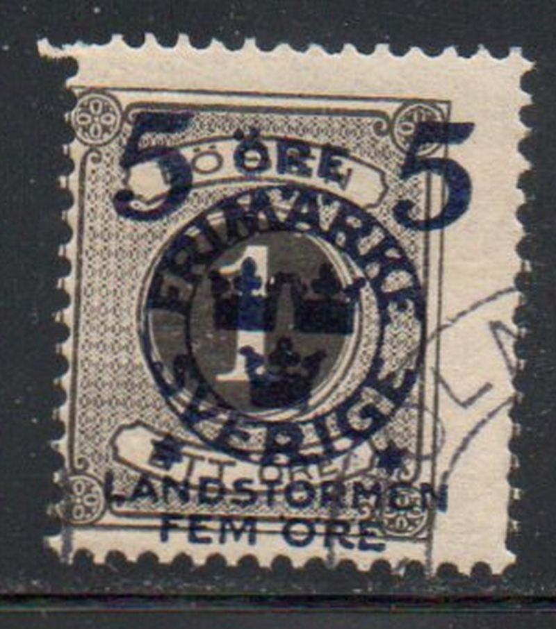 Sweden Scott Catalogue number B12 1916 5 +5 overprint on 1 ore postage due stamp, surcharge for Militia .