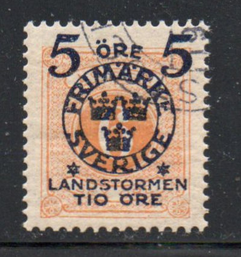 Sweden Scott Catalogue number B15 1916 5 +5 overprint on 6 ore postage due stamp, surcharge for Militia .Used, fine .Member Canadian Stamp Dealers Association .Canadian Customers - I pay the GST/HST on your purchases from me .25-6-8.jpg