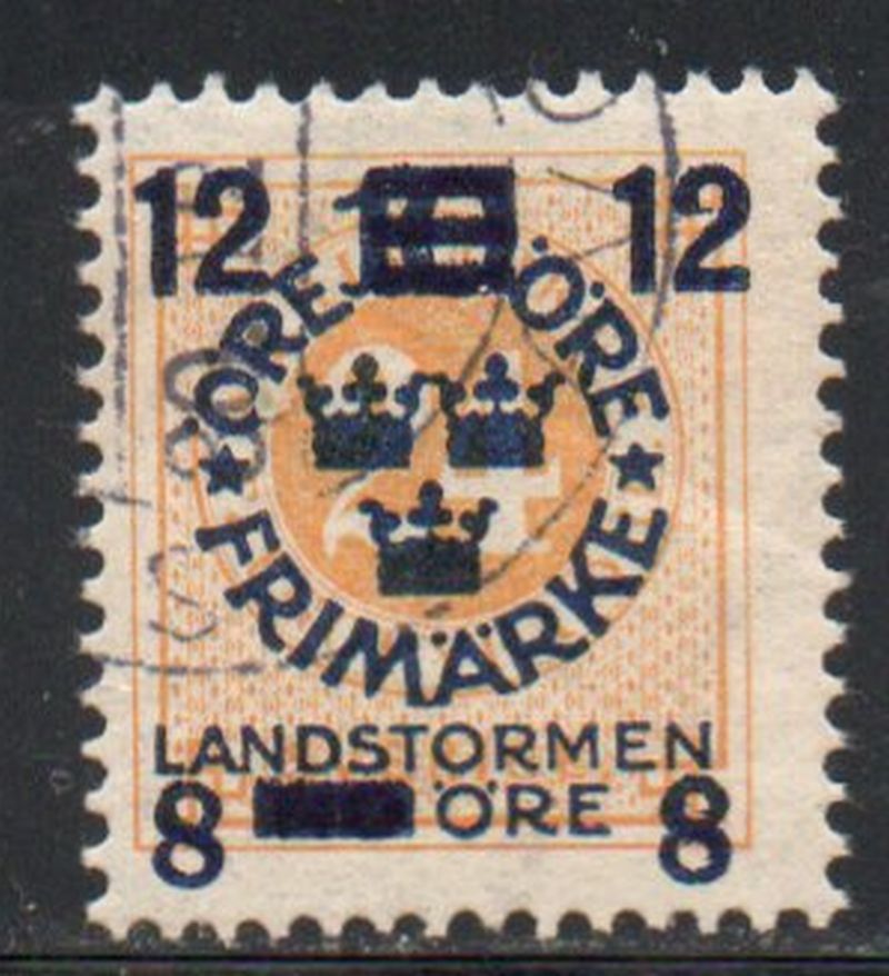 Sweden Scott Catalogue number B28 1918 12 + 8 overprint on 24 ore stamp, surcharge for Militia .Used, fine .Member Canadian Stamp Dealers Association .Canadian Customers - I pay the GST/HST on your purchases from me .25-6-10.jpg