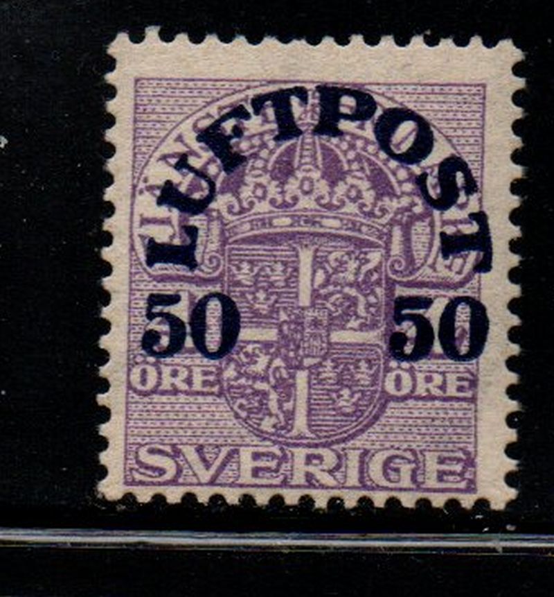 Sweden Scott Catalogue number C3 1920 50 ore LUFTPOST overprint airmail stamp .Mint, very good to fine, original gum hinged .Member Canadian Stamp Dealers AssociationFree shipping on purchases over $50 going to North America .Canadian Customers - I pay the GST/HSt on your purchases from me .22-1-122.jpg