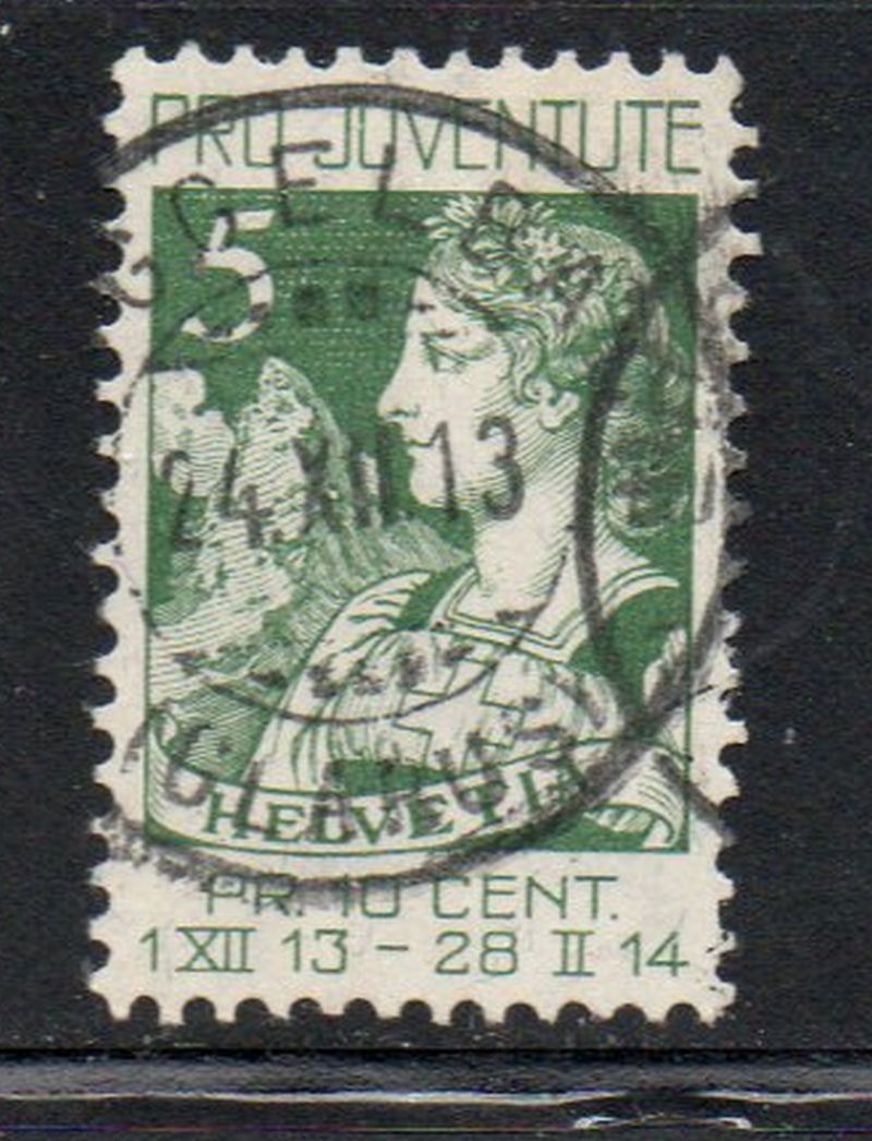 Switzerland Scott Catalogue number B1 1913 Helvetia & Matterhorn stamp.Used, fine to very fine.Canadian Customers - no added GST/HSTUS customers - No tariffs on stamps sent by meMember Canadian Stamp Dealers Association21-5-20.jpg