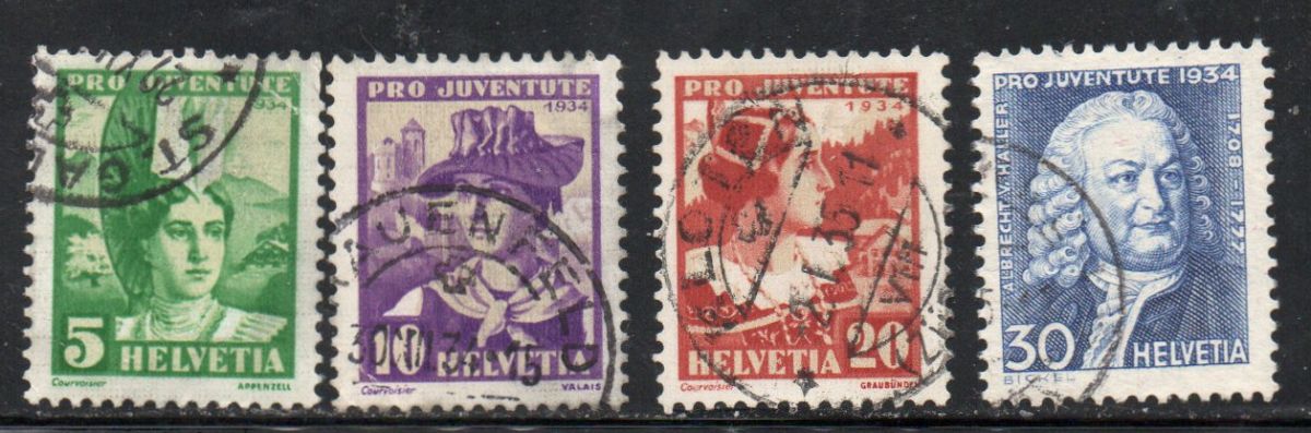 Switzerland Scott Catalogue number B69-72 1934 Pro Juventute Girls stamp set.