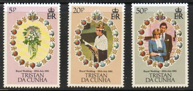 Tristan da Cunha Scott Catalogue number 294-296 1981 Royal Wedding Prince Charles & Diana  stamp set .Mint, fine to very fine original gum hinged .Member Canadian Stamp Dealers Association .Canadian Customers - I pay the GST/HST on your purchases from me .