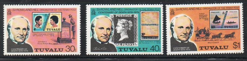 Tuvalu Scott Catalogue number 122-124 1979 Sir Rowland Hill stamp set .