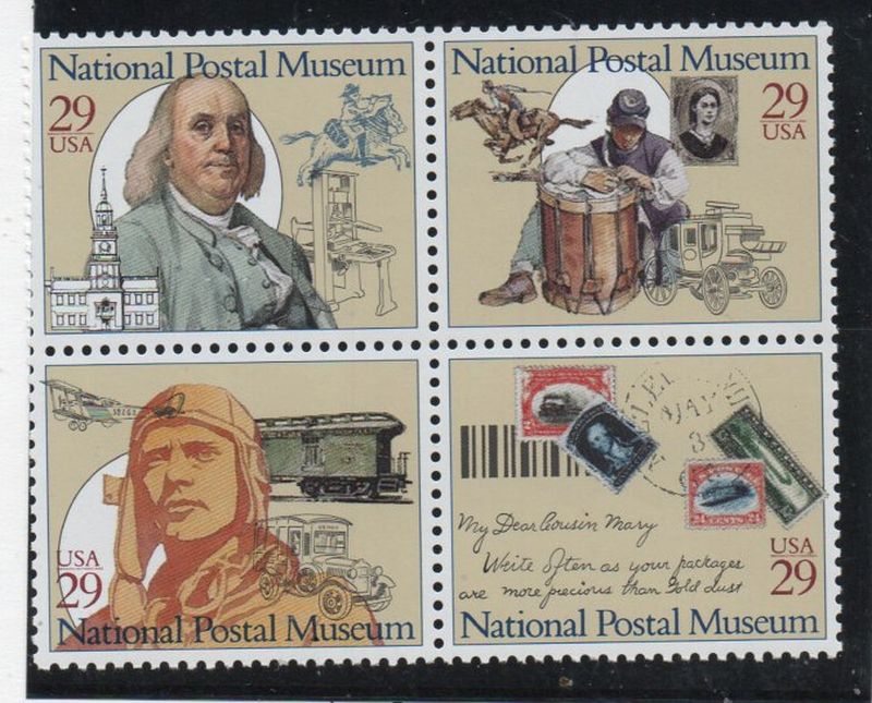 United States of America Scott Catalogue number 2782a 1993 National Postal Museum stamp block of 4 .