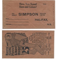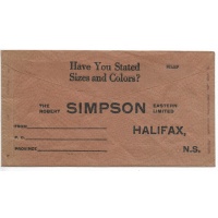 Unused Advertising Cover THE ROBERT SIMPSON EASTERN LIMITED Halifax N. S.